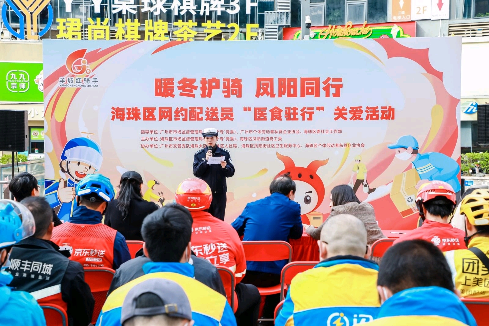 暖冬同行蚂蚁配资,“骑”享安康。11月21日,海珠区网约配送员“医食驻行”暖“新”关爱活动在海珠万达广场举行。