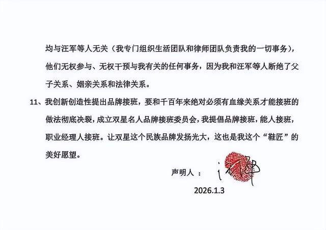 [1] 新黄河:双星名人84岁创始人汪海声明断绝父子关系,2026.1